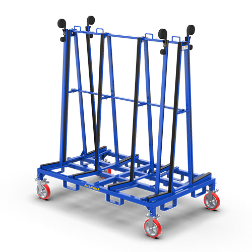 Stone material handling for Lifting, moving, and storing stone slabs using specialized clamps, vacuum lifters, and vertical racks.